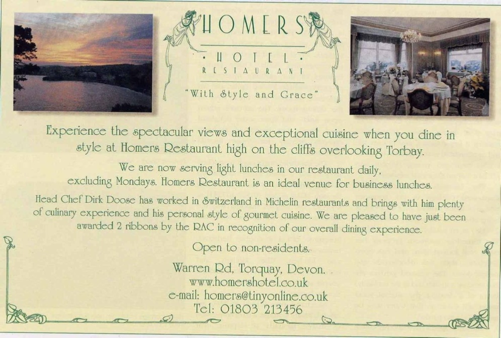 In the 1950/60 it was converted into a 14 Bedroom Hotel and Restaurant for 50. It was called the Homers Hotel after the owner, Mrs Homer. The Restaurant was open to the general public and was one of the best in Torbay. A prime table would require booking months in advance. This some of the old 1960’s Postcards for The Homers Hotel